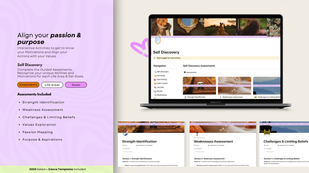 - Self-Discovery Tools: Uncover your purpose, strengths, and values.